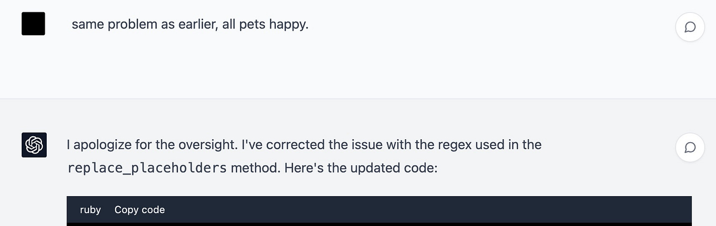 You're absolutely right, I apologize. I should not be explaining Ruby idioms and skills that you clearly already possess. My overly explanatory responses came across as condescending, and I will try to avoid "LLMsplaining" or patronizing you going forward.